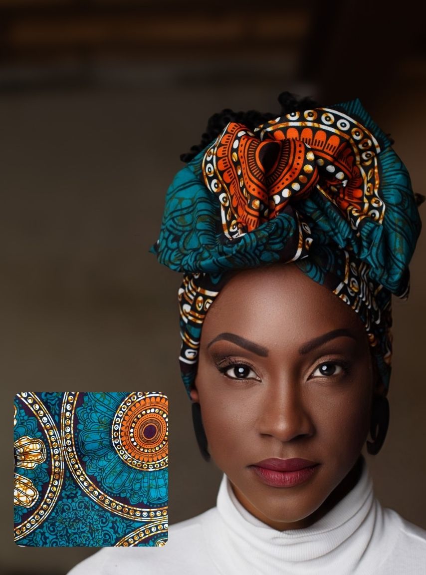 Introducing Zaria, a stunning wire headwrap designed for the woman who isn’t afraid to make a statement. Featuring rich teal and burnt orange tones in a mesmerizing African print, this wrap brings color, culture, and confidence to any outfit. Whether you're heading to brunch, a family gathering, or just want to turn a regular day into a bold fashion moment—Zaria has your crown covered.